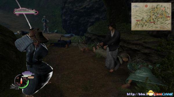 初次与Nodobotoke对话,两次选择第一个对话选项,每个任务都会有浪人在这个区域里溜达,他们穿着全黑的服装,很容易就可以识别出来,杀死一个人就能够获得1000文。