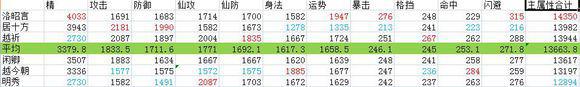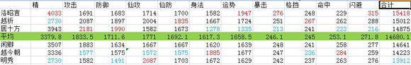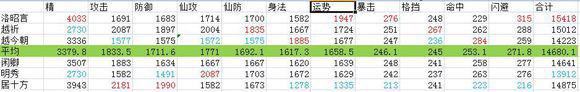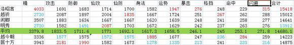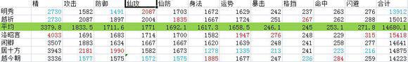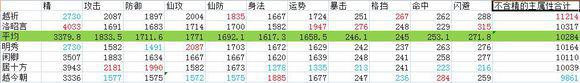 不过由于昭言精的优势太高,所以再来一个不含精的主属性合计