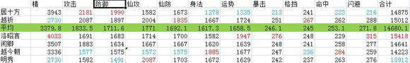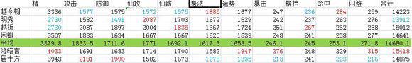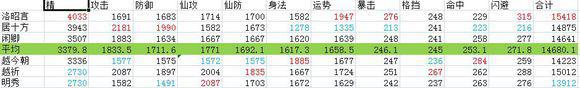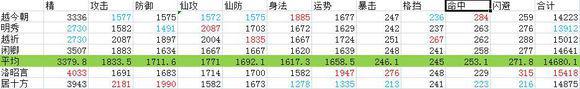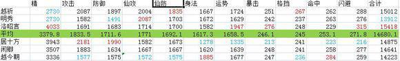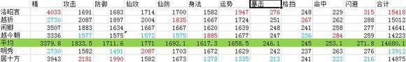 祈妹子不做第二啦!超过小秀儿变身仙防第一人。秀儿你别上火啊、、整天生气会长鱼尾纹的啊……洛昭言和居十方都在平均值左右,由此看来,对于仙术攻击强劲的敌人似乎用昭言做T会更稳妥一些?而垫底儿的……怎么又是你啊今朝……请允许我做一个悲伤的表情,皮脆,血少,攻击低,要你何用,万年板凳之!