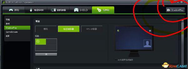 如图打开GEFORCE ERPERIENCE,最右边还有一个shadowplay按钮。点开。
