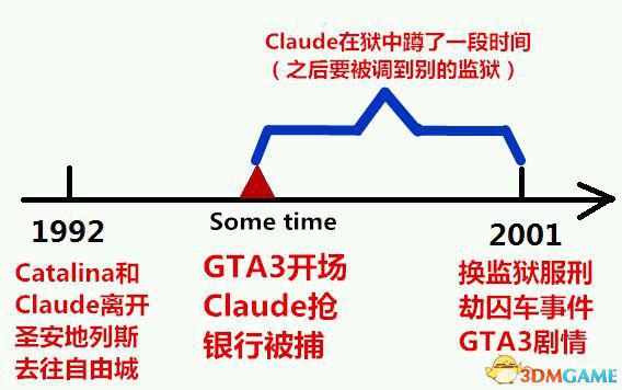 43.Claude和Catalina抢劫自由城银行的事并不是2001年发生的,Claude和Catalina来到自由城不久就去抢银行了,结果就发生了gta3开头的一幕,Claude被捕入狱十年,他被转送到波特兰监狱的途中,囚车被劫...(虽然广播中提到“昨天”,但是那说的是“劫囚车”的事)