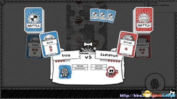 对付这只骷髅兵的出牌,一直都是背朝上的,因此玩家只能够是猜测性地出牌,骷髅兵是属于物理怪物,因此首先就要备好物理防御卡牌,多打出物理防御卡牌就可以借助反伤对付骷髅兵,而勇者自身风险也会降低。