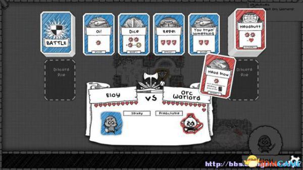 兽人军阀的卡牌是物理攻击外加对手弃牌、双重攻击外加自身丢血,如果玩家的勇者持有更多的防御卡牌,那么当兽人军阀每次使用多重攻击,不但受到自身攻击卡牌要求的丢一滴血,而且还得受到勇者反伤影响,那么它的11滴血很快就会耗光。