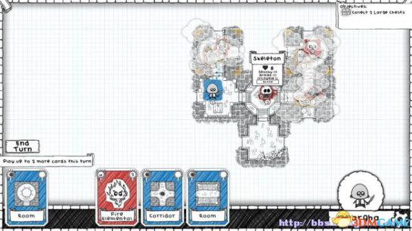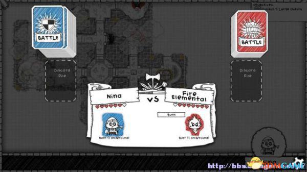 step3.第三个宝箱是由火焰精灵来看守,它相当于是火属性的幽灵,自身卡牌都是魔法攻击搭配物理防御,而且与之作战必然双方每回合都要受到一点火焰伤害,因此一定要多作魔法防御(对其造成反伤),最好就是多使用带魔法防御外加物理攻击的卡牌,这样能够得到更多的额外伤害。