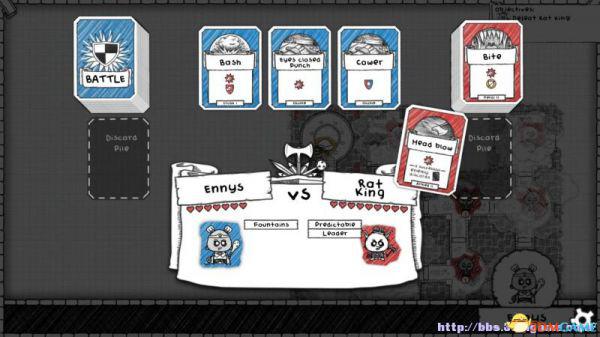 鼠王的攻击卡牌多数是一物理攻击加特殊效果(特殊效果为弃牌或者是自身无法防御),因此玩家初期出牌最好是一攻外加物理防御的卡牌,起码保证前期不丢血。