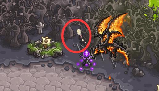 为时已晚?TOO LATE?第23关。点落三个纸片,然后点击该生物。梗出自面条人(一种恐怖的虚拟生物)。找到经典老片风格的恐怖生物“瘦长鬼影”。Find Slenderman, the old-fashioned horror creature.Level 23. Shoot down all the pieces of paper and click on the creature. A reference to the Slender Man.