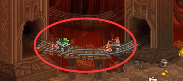 矿车大屠杀MINE CART CARNAGE第3关。点击后面的那个矿车。梗出自任天堂的DK(大金刚)。帮助矮人王国穿越矿区。Help DK through the mines.Level 3. Click on the second mine cart. A reference to the "Donkey Kong".