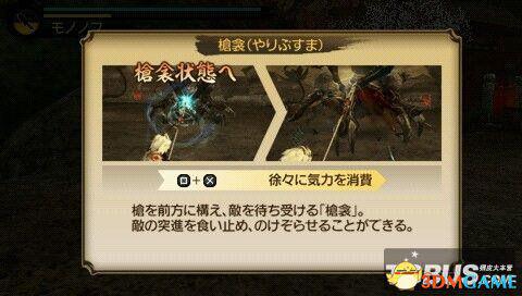△+O——鬼千切:长枪的必杀技,发动后按口/△/O射出投枪。与弓箭一样,发动鬼千切后如果不按任何键的话,枪会自动投出。