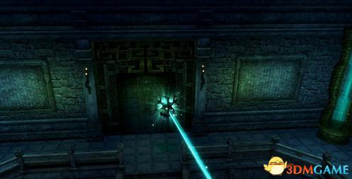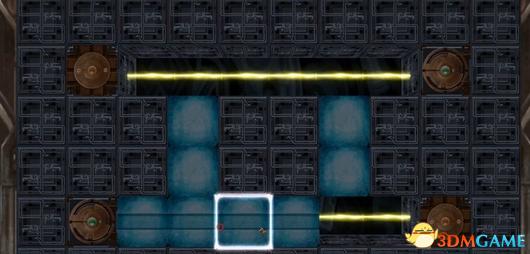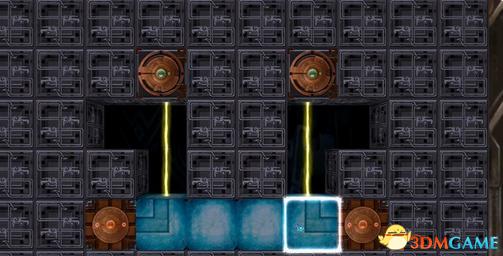 1、首先是最初外面遇到的机关,需要居十方来操作解开,这个原理很容易理解。只要让核心是绿色的光线发射装置发出的射线,最终射入到核心是灰色的装置即可。有实心的蓝色元件和可以改变方向的引导元件,如何搭配还是很好理解的。