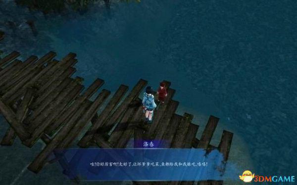 码头的栈桥上站着小女孩洛春,她央求主角帮忙抓几条鱼上来,这样她就可以回家吃鱼肉大餐了。