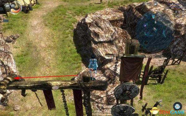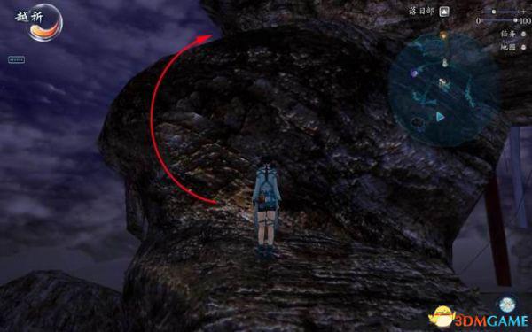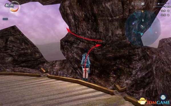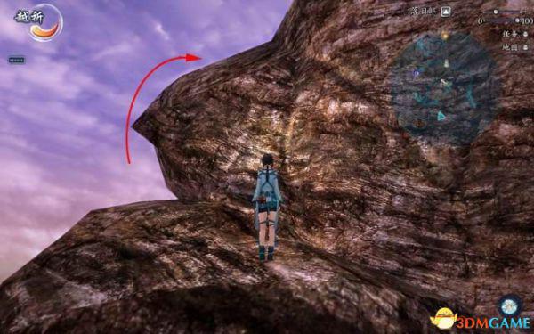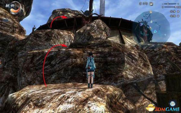 面对那道高崖的巨石,由帐篷边缘朝石壁的突台上跳,沿着斜面顺时针方向绕过去,注意要按住W键贴紧石壁,再不停的跳跃来保持不滑下去。