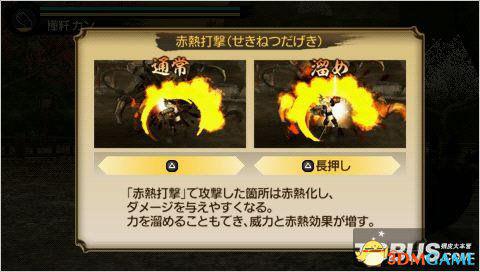 给敌人附上燃烧效果,在此效果下,中了燃烧效果的敌人部位会陷入燃烧状态,此部位的防御力降低。赤热打击还可以进行三段蓄力,蓄力越高,威力越大并且防御降得越多。这招是断BOSS部位必备的技能,玩家们必须要在适当的时机为BOSS的部位添上燃烧效果,从而达到快速断部位的效果。