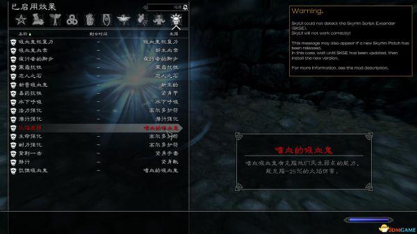 提醒:如果你已经是吸血鬼,需要变回正常人再变成吸血鬼才能激活其中的效果,所以建议大家用一个没有变过吸血鬼的干净存档玩。