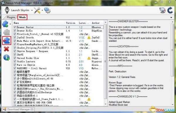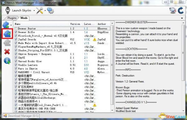 1,打开NMM管理器,点选Mods选项卡,点击左上角红框内的按钮添加压缩包