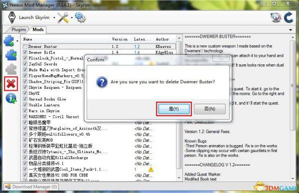 1,打开NMM管理器,点开Mods选项卡,点击左面红框内的按钮卸载MOD