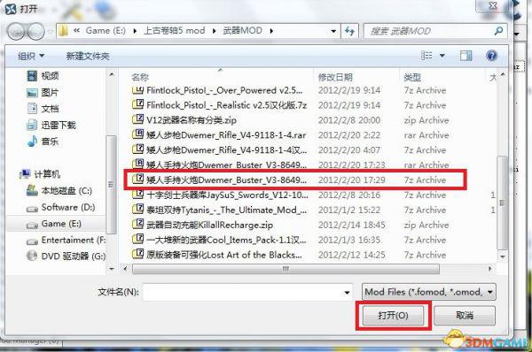 建议NMM加载时直接加载你下载的压缩文件,可以避免进游戏后出现各种奇怪现象…方法如下。以下内容是从俺的其他帖子里复制过来的,仅仅是举例哦…