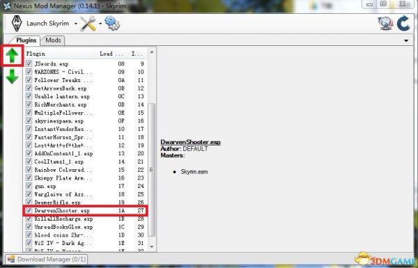 7,点击上移或者下移按钮把esp文件移动到你所需要的排序(当然你也可以用BOSS排序,只是那个不完全准确)