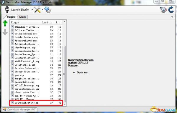 6,点击NMM上方Plugins选项卡,可以看到你新加载的压缩包内的esp文件