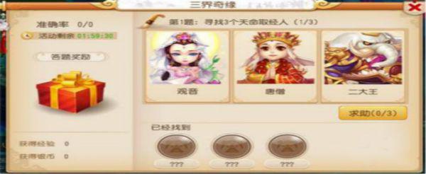 三界奇缘玩法每天中午开启,玩法考察玩家对三界人物的了解程度,需要回答关于三界人物关系的题目。共10道题目,如果回答正确大于等于6道题目,便可以获得奇缘礼包。