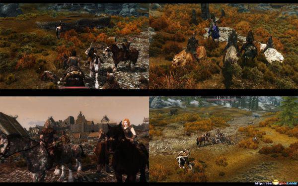 3.如果你用过一些随从骑马MOD,就会发现快速旅行后随从的马不见了。本系统通过设置玩家坐骑解决这个功能,随从的马会跟随玩家的马,快速旅行后仍然在。