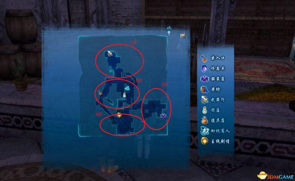因为整个盈辉堡的地图场景做成了沙箱地图(你没看错)并且游戏的场景相对于是比较复杂,所以再次标注成四个区。
