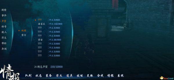 我们可以从游戏菜单中的情报界面可以看到,声望系统包含了城镇声望和势力声望。