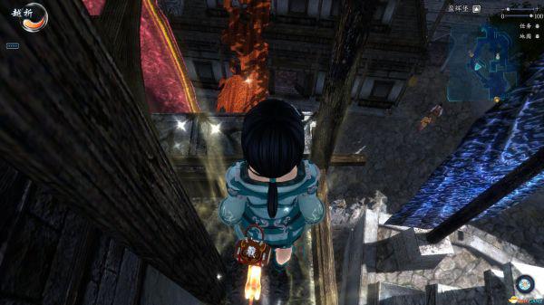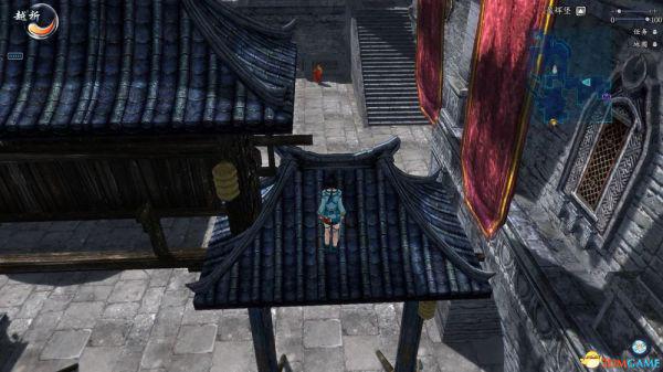 走到这个角度,第一个难点,跳到较低的顶上,容易失败,可以在这里存个档