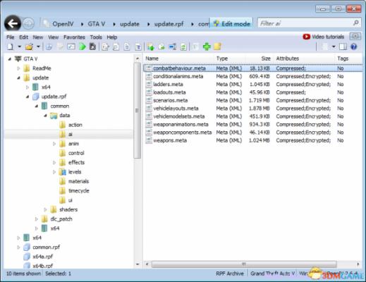 2.替换combatbehaviour.meta,路径GTA V/UPDADE/COMMON/DATA/AI/中覆盖替换