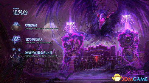 诅咒谷的特色机制是收集贡品,满3个后会召唤乌鸦之神诅咒敌人,使他们的防御塔不能攻击,小兵生命值变成1点。