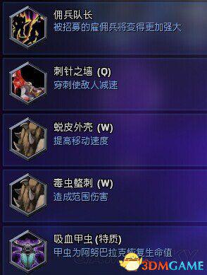 毒虫螯刺:最近越来越喜欢这个了……配合E使得阿努巴拉克瞬间有了不错的清线能力,而他相对贫乏的团战输出会在点完这一点后上个台阶。在对方有泽拉图和诺娃时强烈推荐这个,贴住对方一个W就好了!