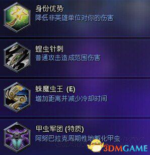 如果点出毒虫螯刺,那么7级以后阿努巴拉克会有不错的推线能力,如果队友忙着支援错过了一大波兵线,那么你也可以顺路QWE迅速收掉它们来吃掉成吨的经验~顺便一提,这个游戏兵线绝对不是无用的,相反,兵线提供的经验非常可观,一定不能无视它。