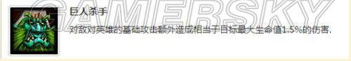 巨人杀手对于猎魔人,伊利丹会带来巨大的收益(每击对于tank英雄,伤害提升接近50%,对于脆皮英雄也可以带来大约25%的收益);