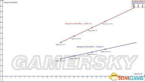 从图中可看出,无论在哪个等级,巨人杀手对迪亚波罗造成的伤害始终是弗斯塔德的一倍多。也难怪这是个切肉天赋。