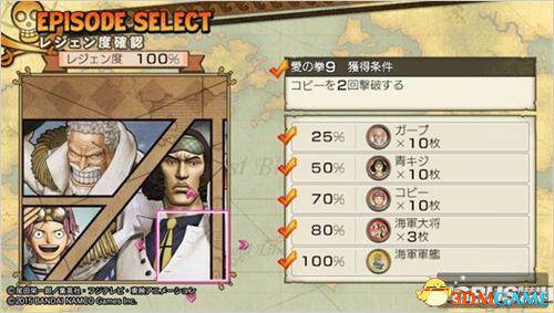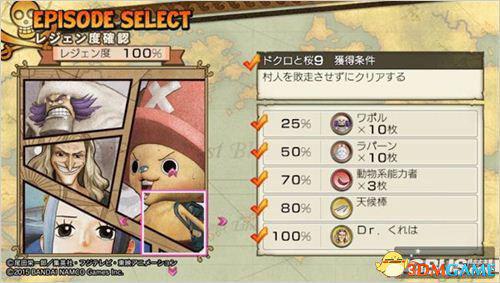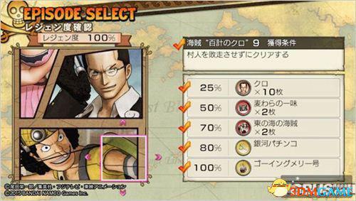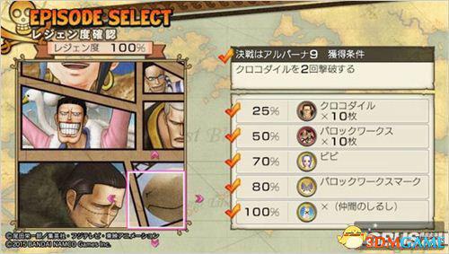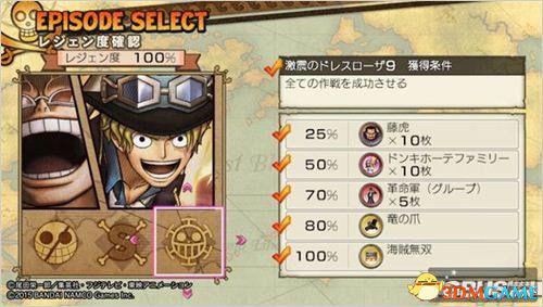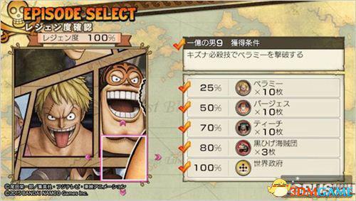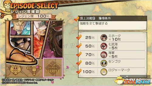 以下剧情模式流程攻略将完整的对每章每话的主线及支线任务进行详细的说明,为了帮助各位顺利取得全S评价和100%完成度。同时汇总了每话所得到的硬币,便于各位给自己喜爱的角色快速提升属性点数。顺便一提,本作可继承前作获得特典:草帽海贼团所有成员硬币各3枚,100000贝利。以下攻略以 PSV 版为例,PS3和PS4版仅供参考。
