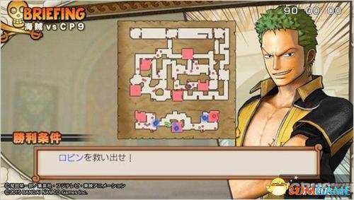 3,支线1:迅速来到地图中间区域,山治出现,汉库克加入队伍。打倒和平主义者,娜美在地图左边区域出现。迅速打倒地图左边区域的2位海贼队长,确保娜美先于山治到达地图最上区域。山治追上娜美会被石化,则支线任务失败。