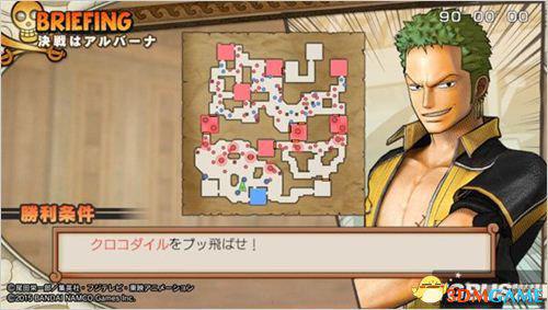 5,三个区域占领后,库洛出场。支线1:引诱库洛来到地图下方乌索普所在位置。不要攻击库洛,确保让他自己走到乌索普所在位置。库洛有可能会被娜美拦住攻击,所以尽量不要打倒左侧的伏击队长和海贼队长,让娜美无暇攻击库洛。