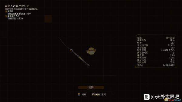 《天外世界》中DLC的近战武器空中打击是非常好用的,很多玩家都不太清楚这个武器的具体属性效果是什么,今天小编就给大家带来玩家“神秘的车头”分享的DLC近战武器空中打击属性效果一览,一起来看看吧。