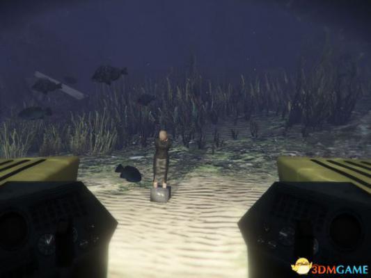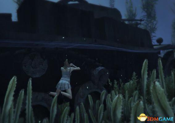 周围的声音还有点恐怖的感觉,是一个穿着office装的女性,头戴麻布袋,手被反绑,脚底被灌了水泥,旁边有个沉船,大家自己去看看