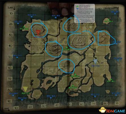 既然ARK中最为主要的资源是:水Water、木材Wood、生铁Metal和石油Oil,那么我们在给自己山寨选址过程中就要尽量靠近以上四种资源。