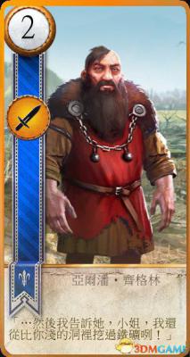 这名矮人性格火爆率直,曾参与狩猎金龙,后在护送队路上巧遇杰洛特并照顾特莉丝。之后在第二次战争中和亚尔潘一起加入玛哈坎矮人志愿军抗击尼弗伽德。2代精灵线可遇到他。