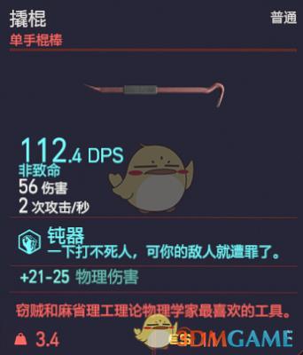 在《赛博朋克2077》这款游戏中,近战武器数量相当多,其中与其他游戏有关系的武器也是蛮多的,其中就有被称作物理学圣剑的撬棍存在。再游戏中还有关于该武器的相关描述,感兴趣的小伙伴就来看看这篇《赛博朋克2077》撬棍武器图鉴吧。