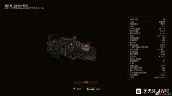 《天外世界》中DLC的冷却液分配器是非常好用的强力武器,很多玩家都不太清楚冷却液分配器的具体属性效果是什么,今天小编就给大家带来玩家“神秘的车头”分享的DLC冷却液分配器属性效果一览,一起来看看吧。
