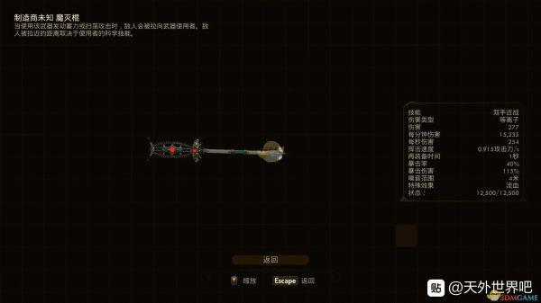 《天外世界》DLC科学武器灭魔棍属性效果一览