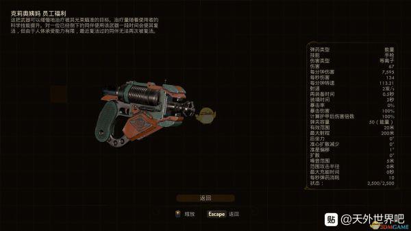 《天外世界》中DLC的科学武器员工福利是非常好用的,很多玩家都不太清楚这个科学武器的具体属性效果是什么,今天小编就给大家带来玩家“神秘的车头”分享的DLC科学武器员工福利属性效果,一起来看看吧。