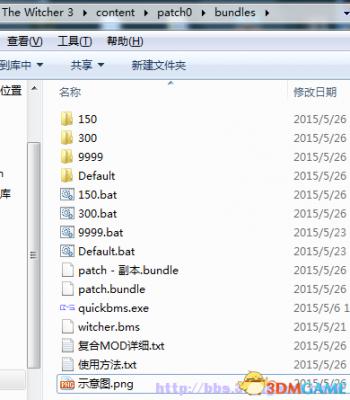 1.复制全部文件到 Witcher3contentpatch0bundles