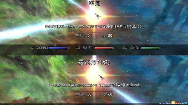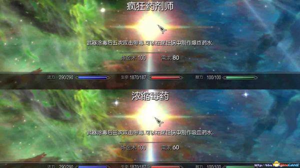 炼金大师篇(EC-S-Alchemy.esp):全新的炼金技能树,爆炸吸血加速永久属性等大量新药水配方!