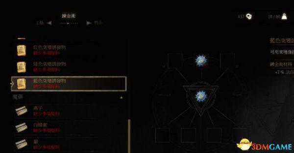 当然突变诱发物的作用并不仅仅于此,在炼金术菜单中也是可以进行突变诱发物的炼金,用多个诱发物合成属性更高级的突变诱发物(前提是点了更高级的炼金术技能)。