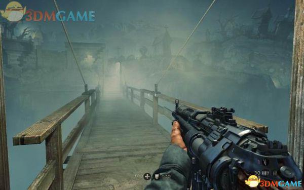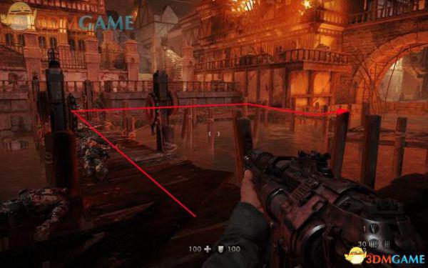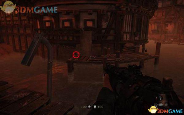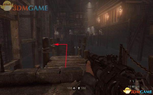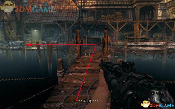 由触发梦魇关卡#7的床铺这里,转身朝对岸的栈桥跳过去。