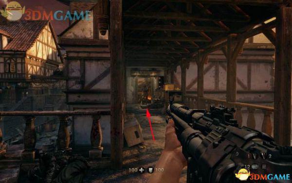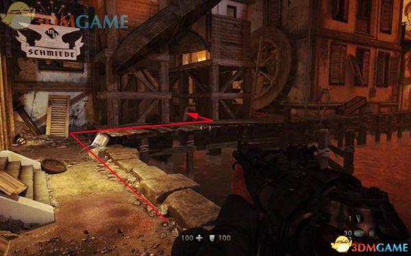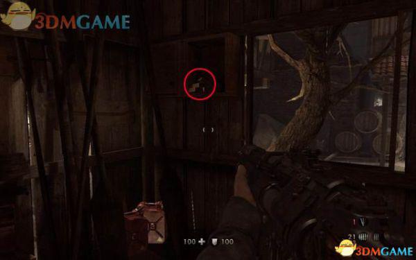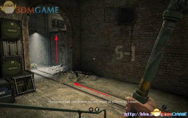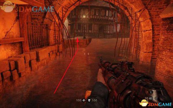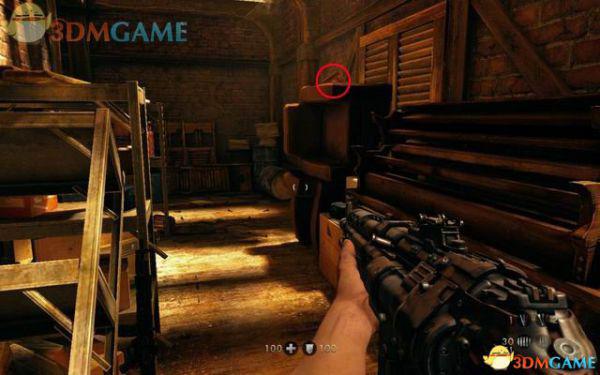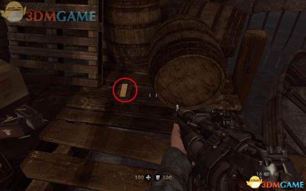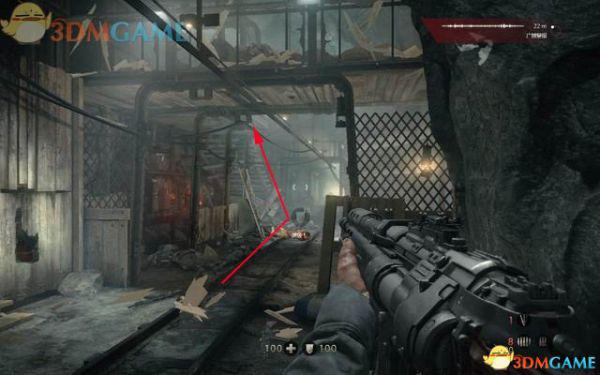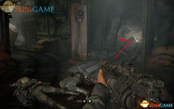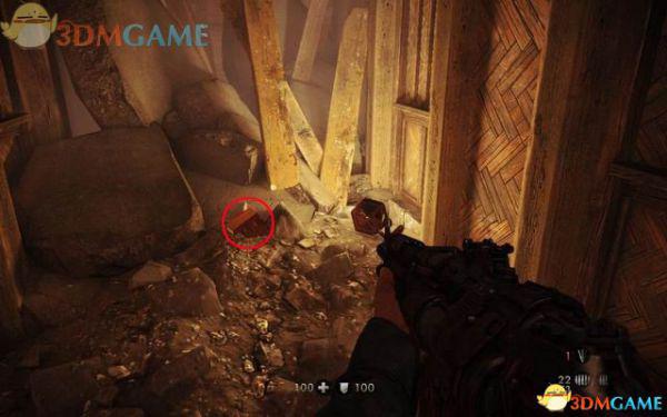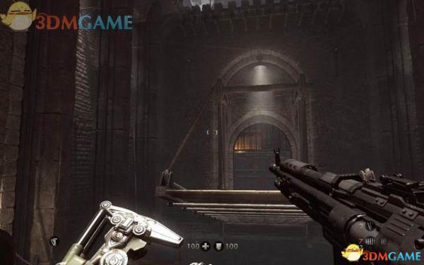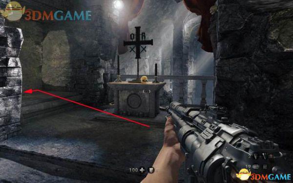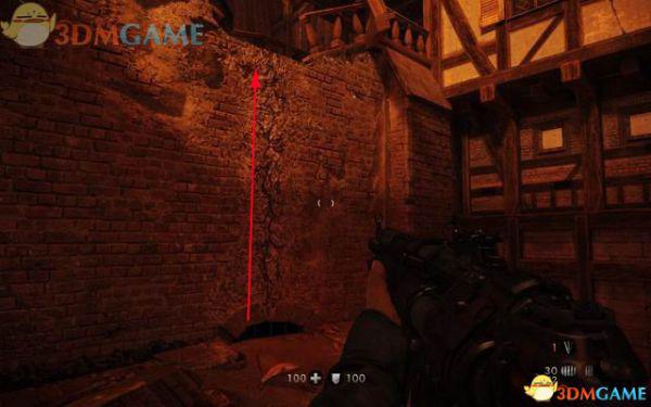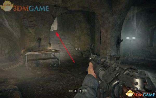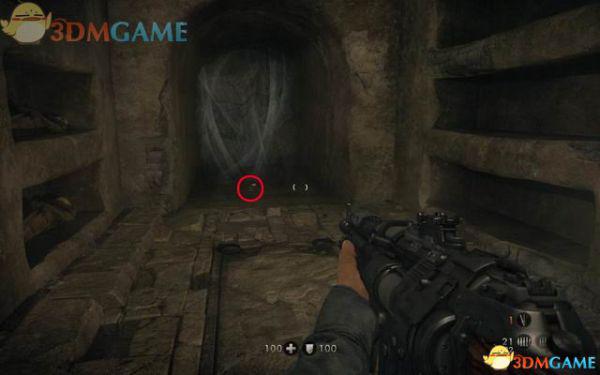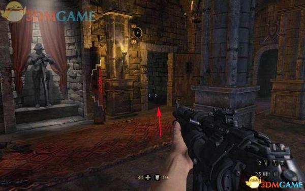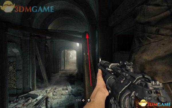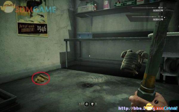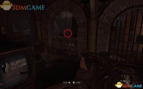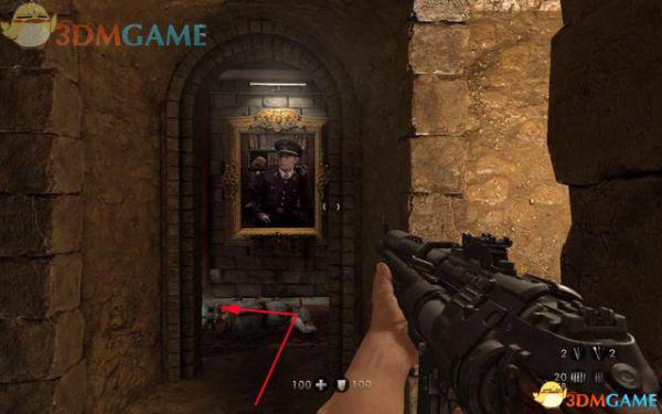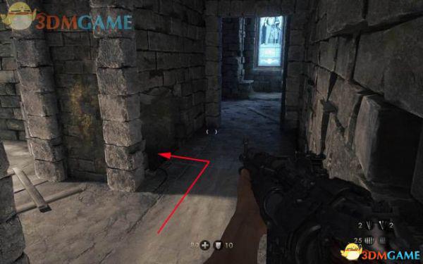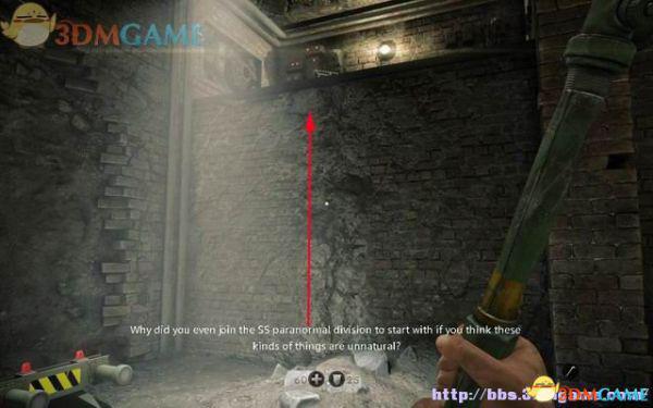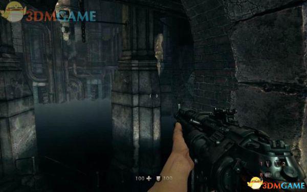 在某些有纳粹党标志的墙壁是可以推进去的,发现隐藏区域。