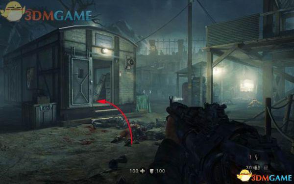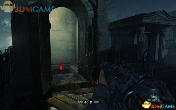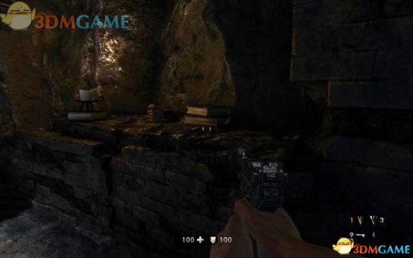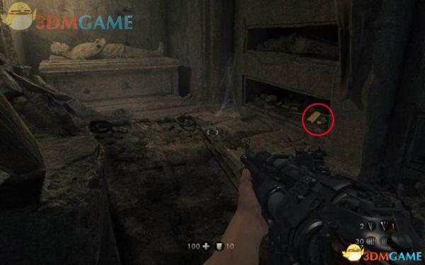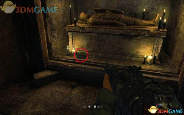 由这个指挥部后门转过去,来到一片墓地,由第一间墓室里的洞跳下去,找到一处秘密地点。